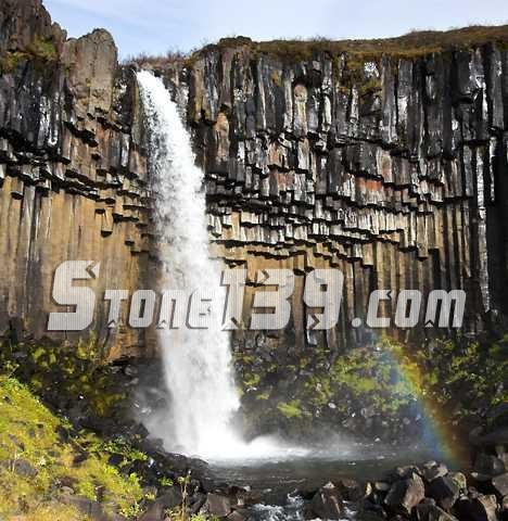 斯瓦蒂佛斯(Svartifoss,冰島語“黑色瀑布”的意思)位于冰島斯卡夫塔費(fèi)德國家公園,是柱狀玄武巖結(jié)構(gòu)極為罕見而又令人印象深刻的例證,一條落差為39英尺(約合12米)的瀑布傾瀉而下,一年四季都能觀賞。柱狀玄武巖半山腰構(gòu)造突出了它們在視覺上與傳統(tǒng)教堂風(fēng)琴管的相似性。斯瓦蒂佛斯玄武巖構(gòu)成了讓瀑布飛流直下的峭壁,它們其實沒有遭受風(fēng)化,邊緣筆直、鋒利,展現(xiàn)了水晶似結(jié)構(gòu)。這是因為瀑布的不停流動引發(fā)的快速侵蝕造成的,而冰島永久性凍融循環(huán)也加速了這個過程。