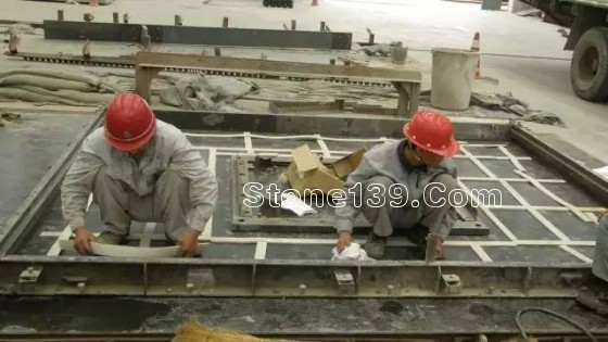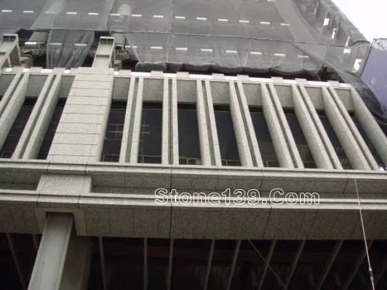 下面講到重點,石材是務必要做背面處理的,目的有三:一是杜絕石材直接與混凝土接觸表面而出現(xiàn)的泛堿白樺現(xiàn)象;二是吸收石材與混凝土因熱膨脹率不同而發(fā)生的微小相對變位,三是預防沒有錨固部分石材發(fā)生裂縫斷裂時的掉落。(所用到的材料是樹脂膠,硅砂以及防水密封膠)