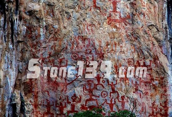 左江花山巖畫文化景觀位于廣西壯族自治區崇左市,包含寧明、龍州、江州、扶綏三縣一區的38個巖畫點、109處巖畫、4050個圖像。公元前5世紀至公元2世紀,壯族先民駱越人在左江及其支流明江兩岸200多公里的懸崖峭壁上,繪制了巨大的赭紅色巖畫。