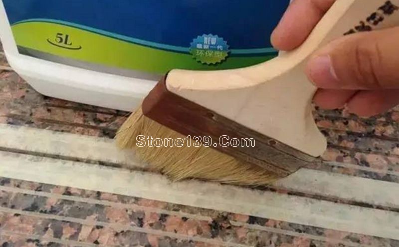 第三步:用毛刷將VD石材潤色防護劑足量的涂刷到溝槽中(可以多涂一些),待防護劑干燥、干固即可。