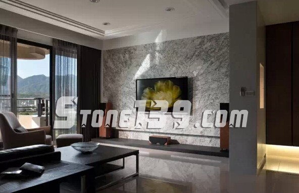 理石作為電視幕墻時,溫潤色澤將使居家裝飾更有整體感。用深色(黑色、灰色、咖啡色、紅色、綠色)大理石來做電視墻時,則可以極速的提高居家的空間質感,就像一幅獨特天然的藝術作品,將成為整個客廳的視覺焦點。而搭配同系列的大理石來設計電視柜,將更現和諧大氣。還有采用紋路型的大理石(也可以用紋路型的花崗巖)來設計幕墻,那將創造新的自然風,也是新穎獨特不落俗套的設計。
