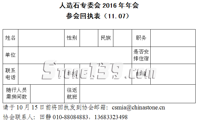 關于中國石材協會人造石專業委員會2016年年會的預通知