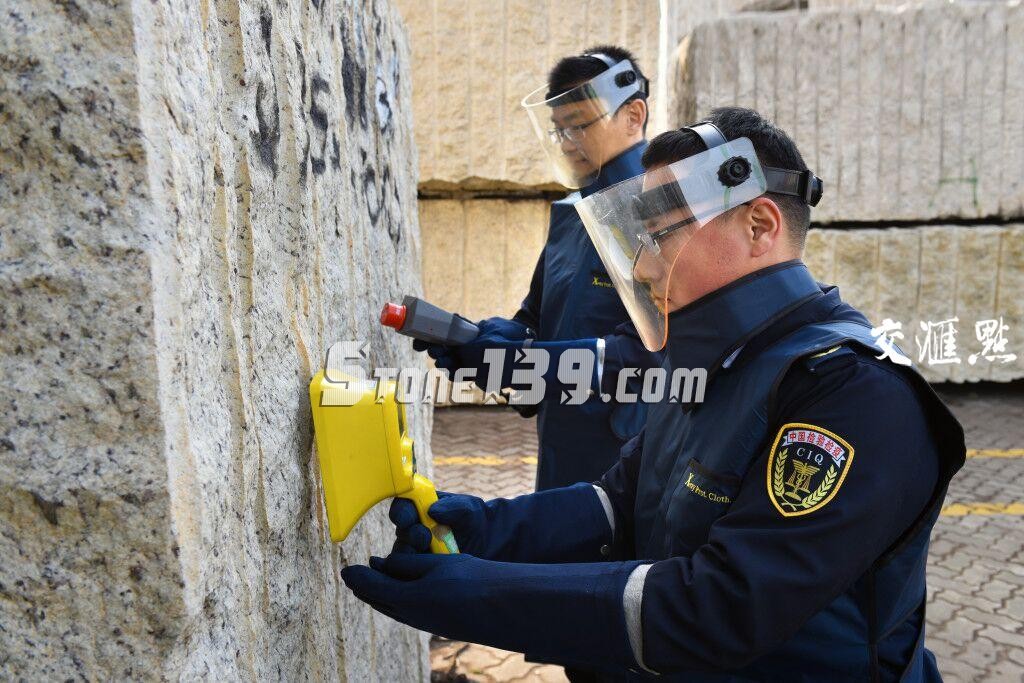 對(duì)經(jīng)檢測(cè)需限制使用場(chǎng)合的建筑用花崗巖石材品種,檢驗(yàn)檢疫及時(shí)出具《檢驗(yàn)檢疫處理通知書(shū)》告知進(jìn)口商的同時(shí),還會(huì)約談相關(guān)企業(yè)負(fù)責(zé)人,建立臺(tái)帳做好后續(xù)監(jiān)管工作等措施。對(duì)經(jīng)檢測(cè)需退運(yùn)的批次,則嚴(yán)格按照相關(guān)法律法規(guī)實(shí)施退運(yùn),把進(jìn)口石材放射性風(fēng)險(xiǎn)杜絕于國(guó)門(mén)之外。