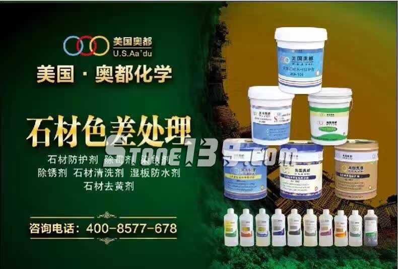 奧都石材化工系列產品的防護原理:讓氟硅材料的有效滲透到石材的毛細孔中,在空氣中石材礦物質反應形成晶體防護層達到防水、防油、抗污等效果,同時保持石材原有的質感、紋理和色彩,不影響石材的透氣性能,從而更好的保護石材裝飾效果和使用壽命。