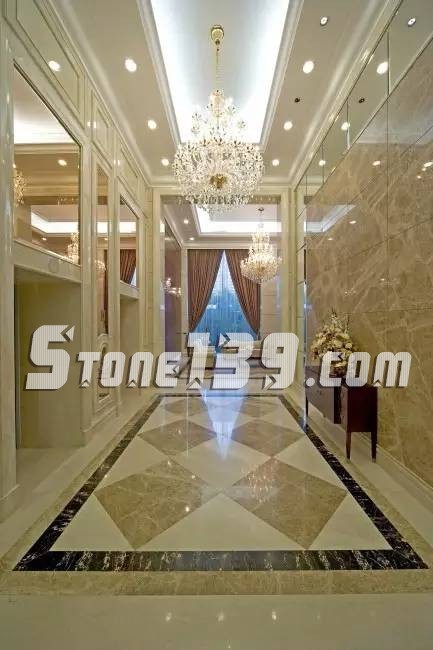 石材地鋪我們常見的都是些在廣場(chǎng)園林用的比較多的花崗巖類產(chǎn)品,堅(jiān)固耐用是選擇花崗巖的主要特點(diǎn)當(dāng)然還有一個(gè)是性價(jià)比高,價(jià)格相對(duì)大理石更便宜,不過在室內(nèi)精裝修地鋪應(yīng)用上大理石由于花紋多樣性美觀程度上要優(yōu)于花崗巖產(chǎn)品而備受消費(fèi)者和設(shè)計(jì)師的青睞。今天139石材網(wǎng)小編就主要介紹下室內(nèi)大理石地鋪應(yīng)用中的幾種拼貼效果。