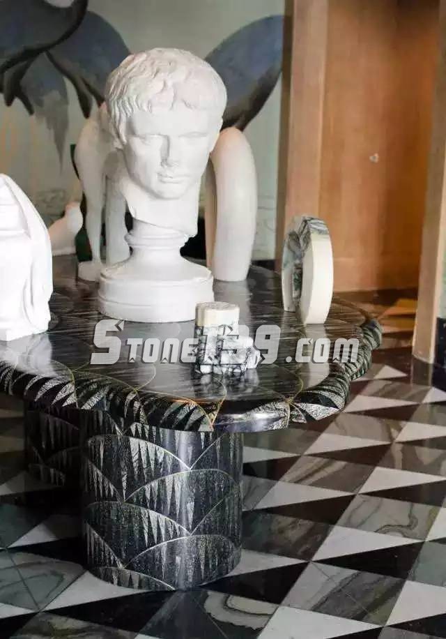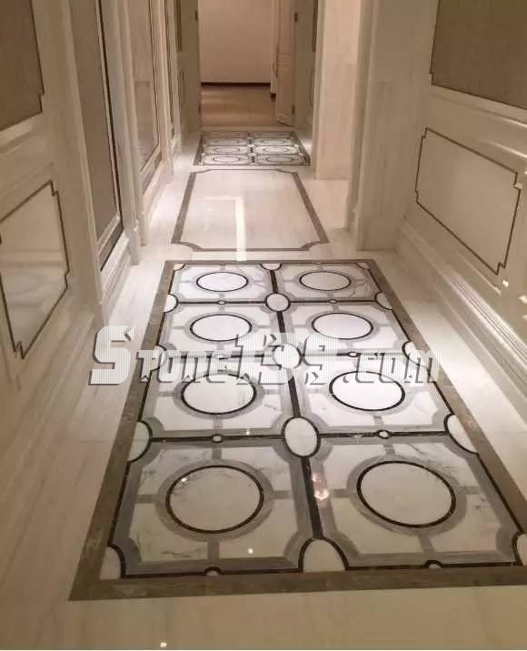 在白色大理石的基礎(chǔ)上用深色大理石進(jìn)行拼花點(diǎn)綴