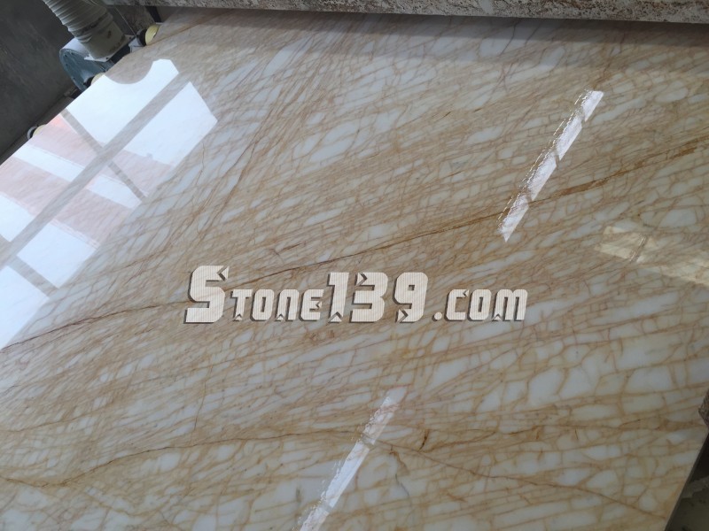 紋路清晰,米黃色的底色,金色的線紋,像蜘蛛網一樣的布滿整個板面,故而得名金蜘蛛。