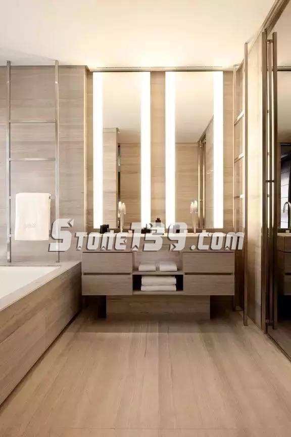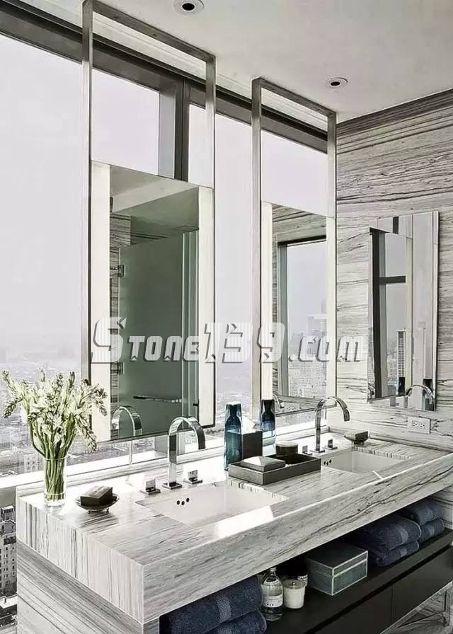 如果地面和墻面都采用石材鋪設(shè),可以選用同一種石材,這樣能夠給人一種整體感,美的純粹。那樣,盥洗時(shí)心情一定是愉悅的。