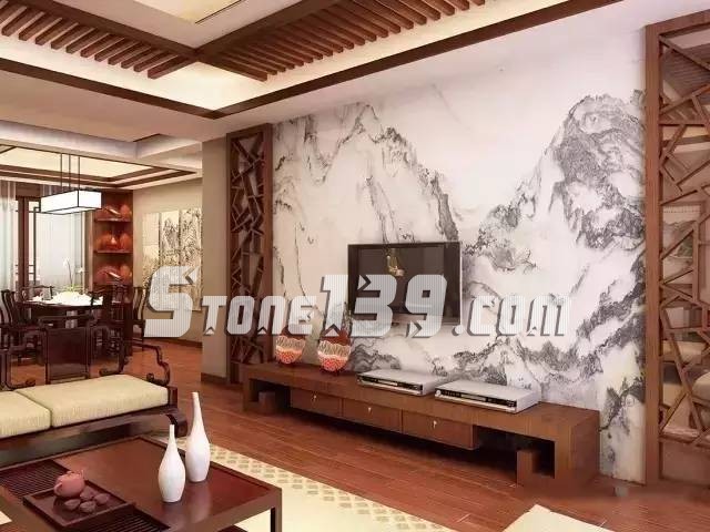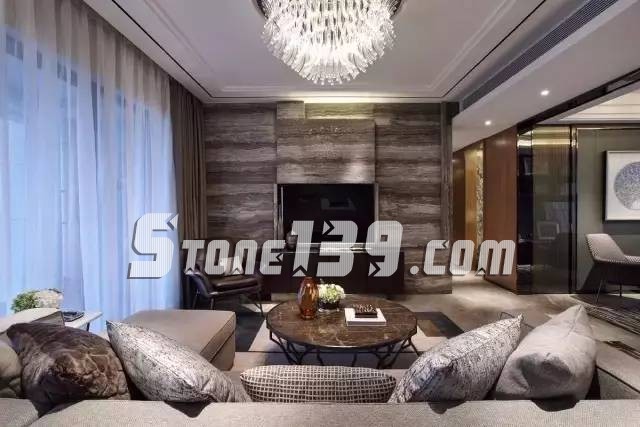 作為客廳的主視覺焦點(diǎn),背景墻往往是一個(gè)裝飾亮點(diǎn),天然石材花紋自然,能很好地表現(xiàn)創(chuàng)作意圖,適合在墻面上做藝術(shù)造型。