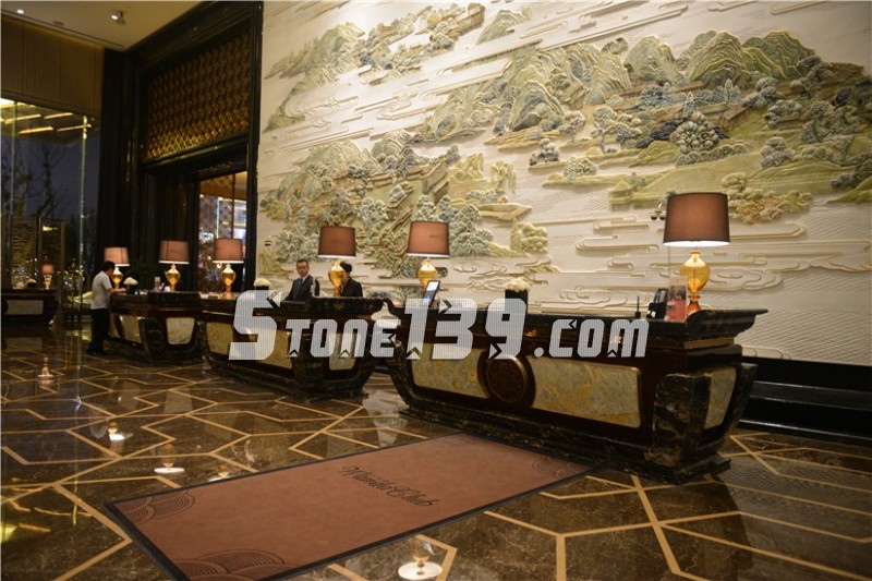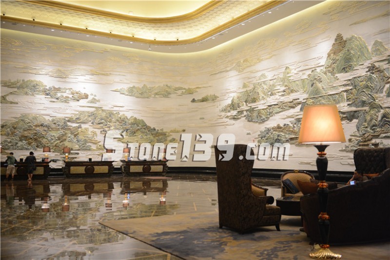 武漢萬達(dá)瑞華酒店是萬達(dá)第一家七星級的自主品牌酒店,其中最具震撼力的當(dāng)屬酒店大堂的大型彩玉浮雕壁畫---《東湖盛景圖》,該圖榮獲“大世界基尼斯之最”之中國最大玉璧畫榮譽。整體提升了酒店的文化藝術(shù)品質(zhì),堪稱博物館酒店。