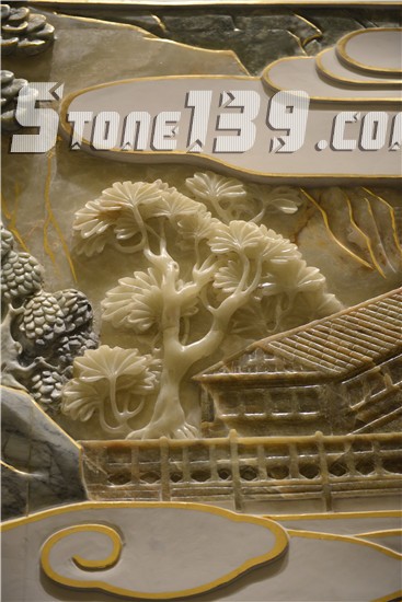 除了傳統(tǒng)浮雕藝術(shù)中單純的三維空間雕刻藝術(shù)手法,在設(shè)計上巧妙地加入時間、歷史人文、詩詞的元素,使這塊大型浮雕不單只是三維空間的藝術(shù),而是形成五維、甚至多維的藝術(shù)效果。在玉料選擇上,幾乎囊括了硬玉、軟玉乃至更多種寶石,同時又結(jié)合純手工黃金包裹鑲嵌及混合剪切榫卯工藝手工,既是令人嘆為觀止的藝術(shù)品,更是美妙絕倫的工藝品。