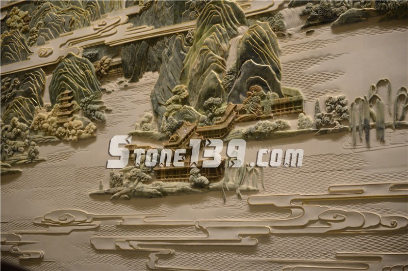 《東湖盛景圖》彩玉浮雕壁畫高10米、長60米、總面積達(dá)600平米,以白玉、天然玉石、金絲等多種世界頂級寶石雕刻而成,是迄今為止全球最大的彩玉浮雕作品。