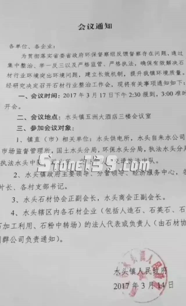 行業經過前期各階段的污染綜合整治,取得一定的工作成效,但仍然存在違規新建項目、批建不符,車間揚塵(粉塵)、石粉石渣邊角料等固廢收集不完善、亂傾倒,石粉露天堆放,石粉收集、運輸車輛“滴、灑、漏”現象等問題。當前中央、省、泉州和南安市高度重視生態環境保護工作,強調以鐵的手腕嚴格整治環境污染問題,石粉揚塵、牛奶溪等問題被省政府環境保護督察組列入專項整改問題之一,今年3月底中央環保督察將進駐福建,石材行業粉塵污染是前期環保部華東組調研的專題項目。為進一步做好石材行業污染整治工作,提升我鎮環境質量,現將有關整治事項告知如下: