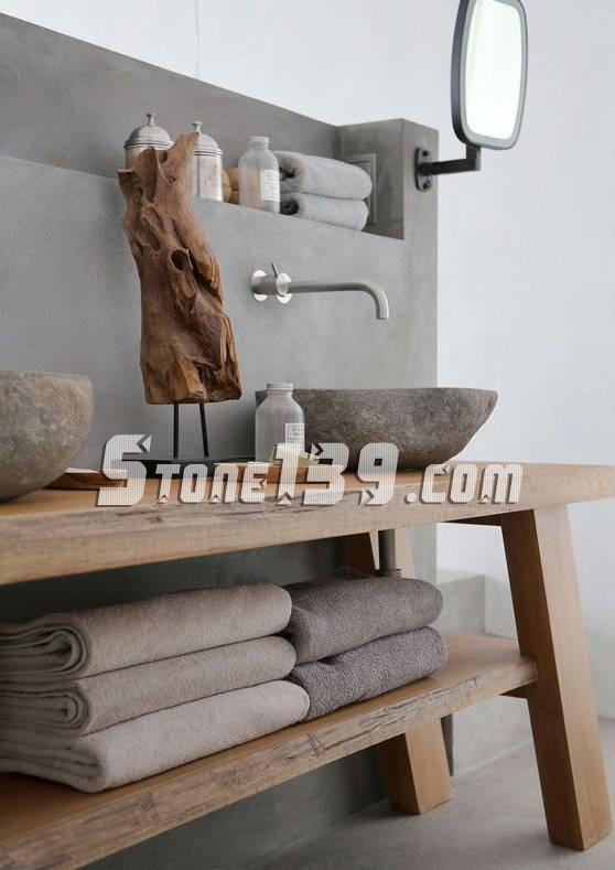 石材的材質和原木營造出古樸風格