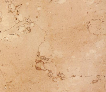 材質特征:該石屬云石,板面呈淺桔紅色,有裂隙線,光度好,易膠補,該板顏色有色差,裂縫粗大,易碎易裂,因有色差,局部看起來呈白色,因板面材質疏松故不宜做外裝,同時該板還易褪色。