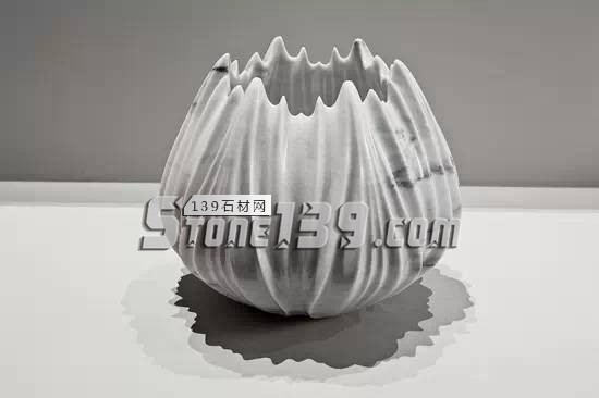 花盆表面不規則的褶皺表現了自然生長系統的復雜性,如花瓣一樣脆弱而優雅的形體,掩蓋了大理石堅硬的本質。