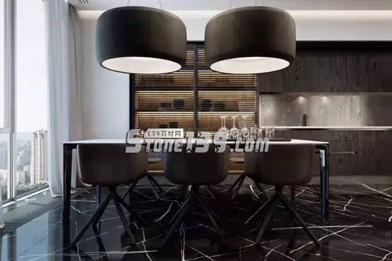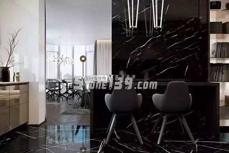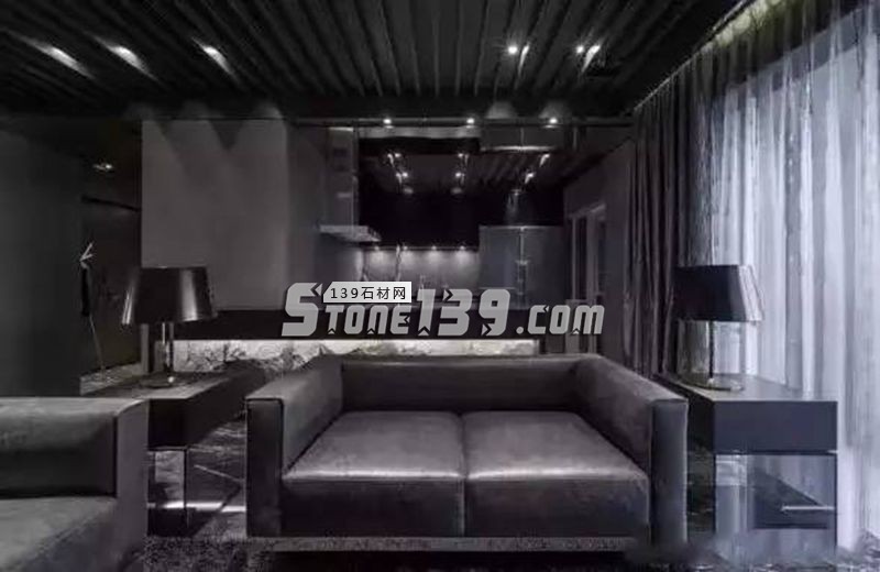 黑色大理石在室內(nèi)空間的表現(xiàn),通常亦高貴亦冷酷。