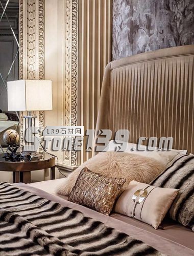 臥室整體氣氛典雅,頂級奢侈品處處可見,墻面雕花處處可見,精細程度已經(jīng)很少見到了,臥室精美的天價水晶吊燈讓人無法移開目光。