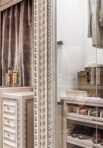室內運用了各種希臘風格的雕花與裝飾線條,家具卻用了大量的現(xiàn)代風格,經(jīng)典、大氣。裝飾品也選用線條簡潔,突出品質感。