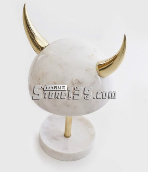 打磨成空心半球形的阿菲永白大理石燈罩上嵌著兩個金屬牛角,這款大理石創意臺燈靈感來源于納維亞戰士的盔甲。關燈時用一派優雅恬靜詮釋曾經的野蠻,開燈時狠厲的牛角隱匿在黑暗中獨留一顆發光的未知“星球”。