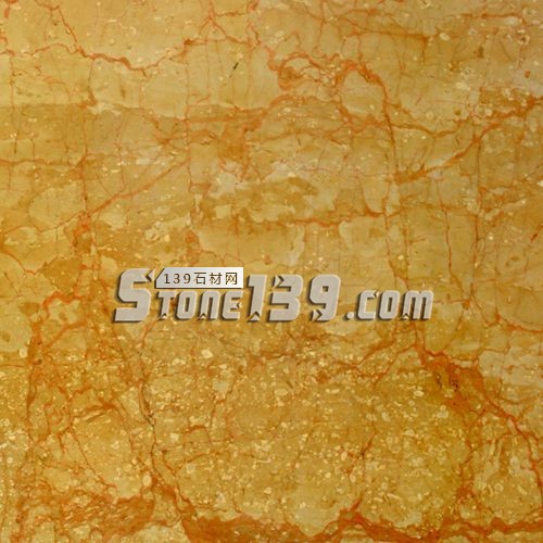 金世紀米黃 底色金黃色,分深金色和淺金色,有玻璃根、白花和色線,是一款常規的中檔裝飾石材。金世紀米黃的光度很好,用在室內,打上燈光,金壁輝煌。