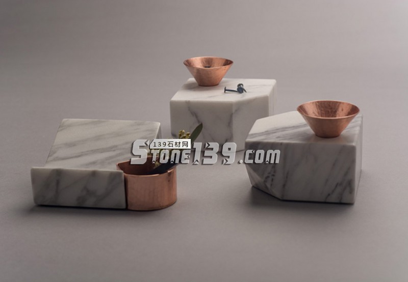 來(lái)自于墨西哥的工作室peca studio選擇了大理石與黃銅兩種材料打造了一套名為“santa clara”的系列產(chǎn)品,將莊重與輕松兩種概念放在了一起。這套裝飾性的套裝產(chǎn)品是由兩種不同的大理石制品組成的,它們各自有一個(gè)手工捶打而成的黃銅容器。這些多功能的配飾可以放在桌子上,作為紙鎮(zhèn)、卡片或筆架,或是書(shū)架上的擋書(shū)板,還可以用來(lái)放首飾以及私人用品等。