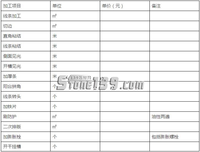 本合同石材加工數(shù)量按甲方提供的加工尺寸清單計(jì)算。
