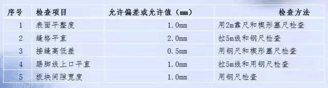7.11大理石和花崗石面層(或碎拼大理石、碎拼花崗石)的允許偏差應符合表7.11的規定