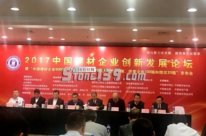 近日,“2017中國(guó)建材企業(yè)創(chuàng)新發(fā)展論壇暨2017中國(guó)建材企業(yè)500強(qiáng)、建材服務(wù)業(yè)100強(qiáng)、民營(yíng)建材企業(yè)100強(qiáng)、最具成長(zhǎng)性建材企業(yè)100強(qiáng)和中國(guó)建材園區(qū)20強(qiáng)發(fā)布會(huì)”在北京召開。