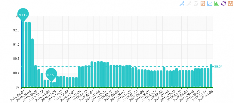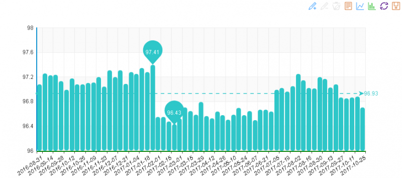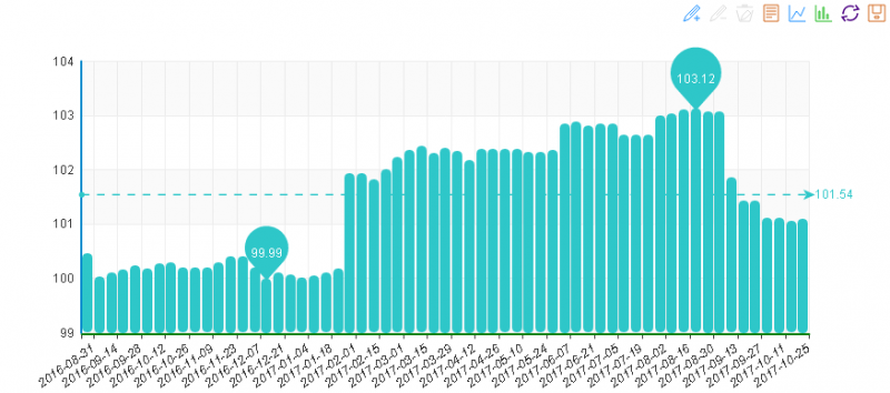 據“中國·水頭石材指數”系統監測,20171025期石材周價格指數收報于95.78點,環比下降0.03點,下降約0.04%,本周石材價格小幅下跌。本周價格較上周波動變化較多,出了其他石材類價格保持不變外,其他3類價格均有波動變化,其中大理石類價格環比下降,花崗石及合成大理石環比上升。