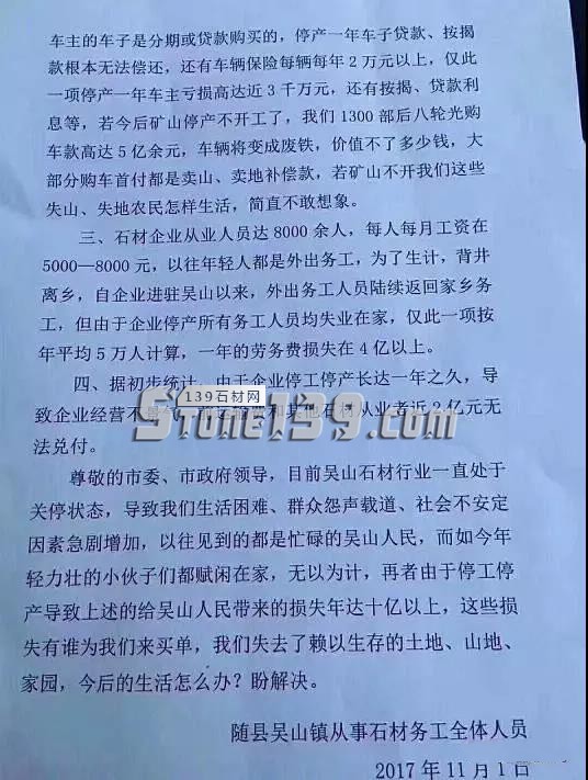 湖北隨縣吳山全體石材務工人員的訴求書