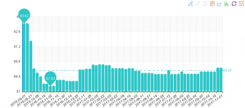 據“中國·水頭石材指數”系統監測,20171101期石材周價格指數收報于95.65點,環比下降0.13點,下降約0.14%,本周石材價格繼續小幅下跌,價格指數一路走低。本周價格變化的僅有大理石,其他石材價格僅與上周持平。本周大部分石材品種價格穩定,部分品種價格隨市場需求正常浮動調整,大理石荒料及大板價格的下跌,帶動本周石材價格呈現波動下調的趨勢。