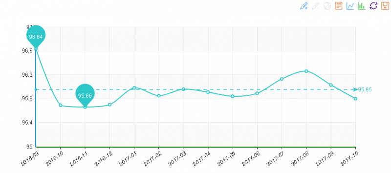據系統監測,10月份石材價格指數收報于95.80點,環比下滑0.23點,下滑約0.24%,本月石材價格指數繼續小幅下調。月價格同比指數為100.11點,超過去年同期的價格。其中其他石材類價格繼續持平,花崗石價格小幅上升,而大理石類及合成大理石類價格均呈下降的趨勢。從周價格指數走勢來看,本月周價格波動變化較小,前三周價格一路向上,至月底價格降又降至低點,降幅僅為0.03點。