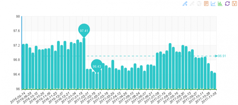 據“中國·水頭石材指數”系統監測,20171108期石材周價格指數收報于95.62點,環比下降0.03點,下降約0.04%,本周石材價格繼續微幅下跌,價格指數一路走低。本周價格變化的僅有大理石,其他石材價格僅與上周持平。本周大部分石材品種價格穩定,部分品種價格隨市場需求正常浮動調整,大理石大板價格的下跌,帶動本周石材價格呈現波動下調的趨勢。