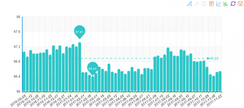據“中國·水頭石材指數”系統監測,20171122期石材周價格指數收報于95.71點,環比上升0.02點,上升約0.02%,本周石材價持續回升,價格指數小幅上漲。本周價格變化的僅有大理石,其他石材價格僅與上周持平。本周大部分石材品種價格穩定,部分品種價格隨市場需求正常浮動調整,大理石大板價格的上調,帶動本周石材價格呈現波動上漲的趨勢。