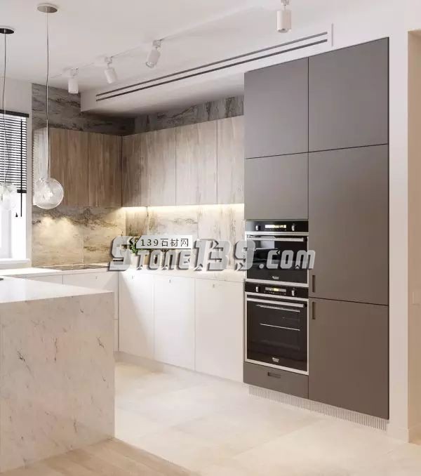 一般來說,廚房裝修使用大理石、花崗石材質,花紋和諧而美觀,光澤柔潤,紋理千變萬化,有回歸自然的感覺。
