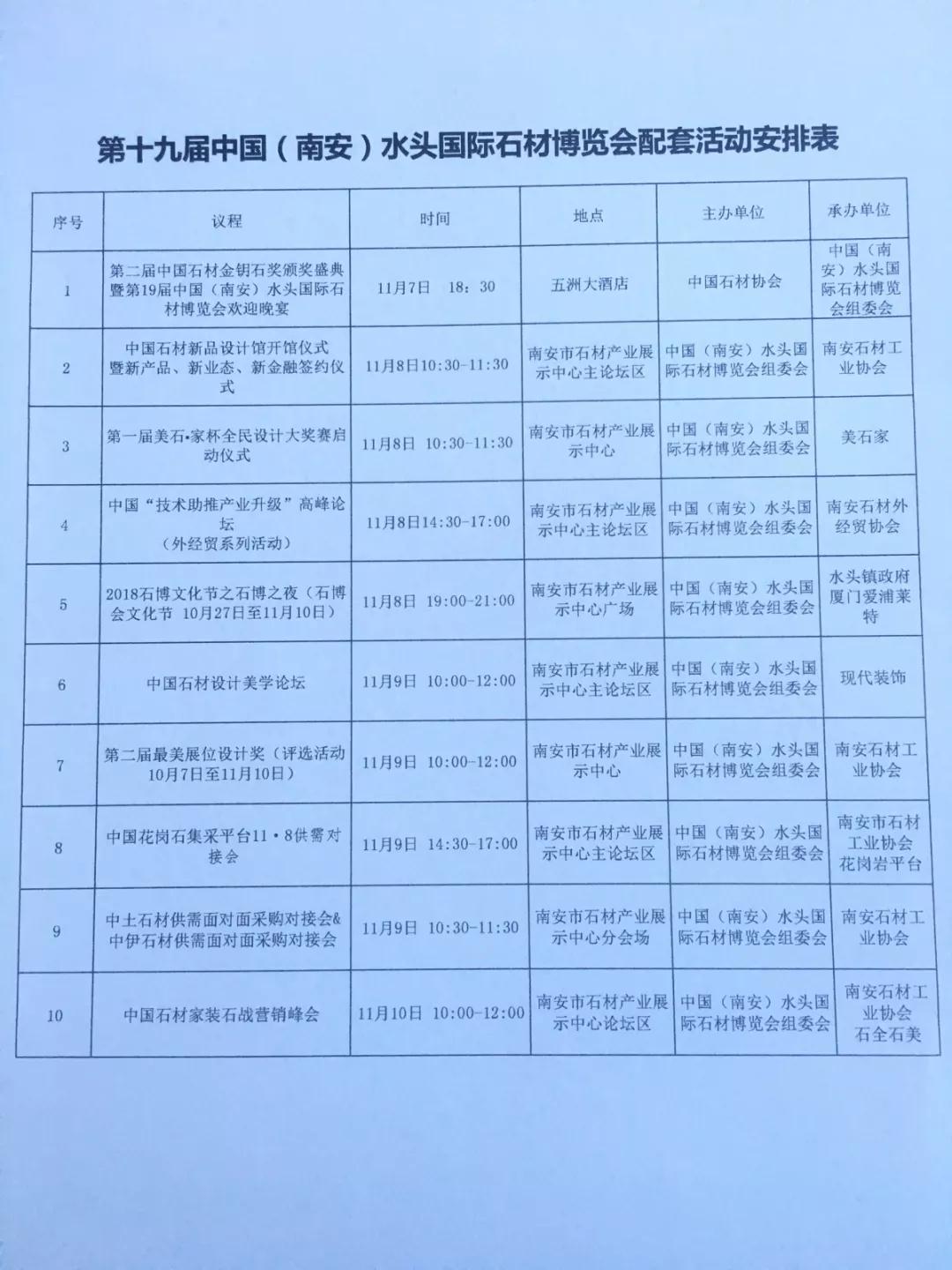 據(jù)悉,第十九屆水頭石博會配套活動由10個議程組成,時間從11月7日持繼到11月10日。在配套活動的宣傳建議上,水頭鎮(zhèn)副鎮(zhèn)長許錦鋒和水頭鎮(zhèn)黨委宣傳委員、統(tǒng)戰(zhàn)委員黃德藝都表示,希望媒體之間都能做到信息共享,在找準(zhǔn)和報道相關(guān)配套活動亮點的同時,也能夠共同讓水頭石博會的“亮點報道”成為亮點。