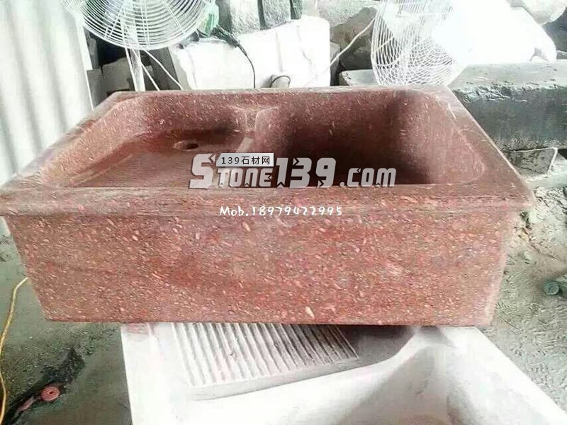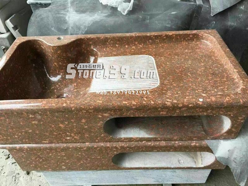 江西一體洗衣池廠家批發 映山紅洗衣池 紅色花崗巖洗衣池