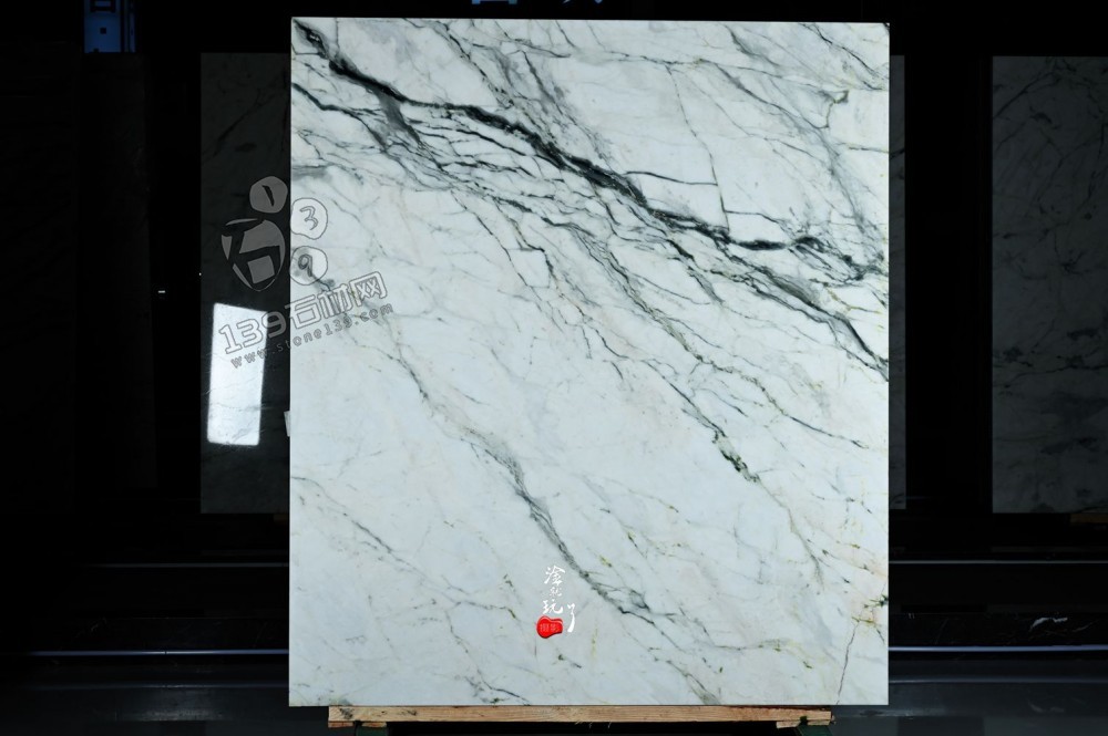 墨韻山水紋 紋路特征:底色為乳白偏暖調,淺灰與深灰紋理交織成層疊的山巒形態,局部點綴墨綠色礦物結晶(如遠山植被),紋路走向錯落有致,宛如中國傳統水墨畫中的 “遠山含黛” 意境,板面平整度高,光度達 90° 以上。 應用場景:新中式茶室的茶臺臺面(文化氛圍感拉滿)、書房背景墻(搭配木質書架凸顯雅致),或別墅玄關的地面拼花(以山水紋寓意 “開門見山” 的吉祥意頭)。