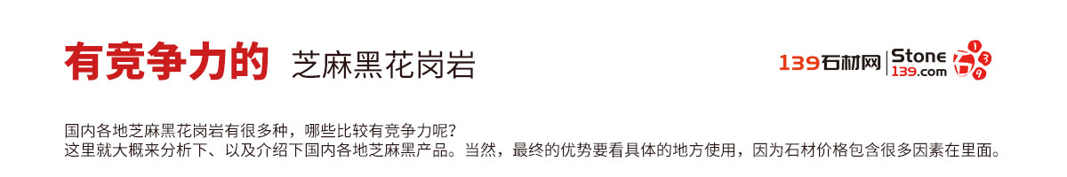 國內各地芝麻黑花崗巖有很多種,哪些比較有競爭力呢?這里就大概來分析下、以及介紹下國內各地芝麻黑產品。當然,最終的優勢要看具體的地方使用,因為石材價格包含很多因素在里面。