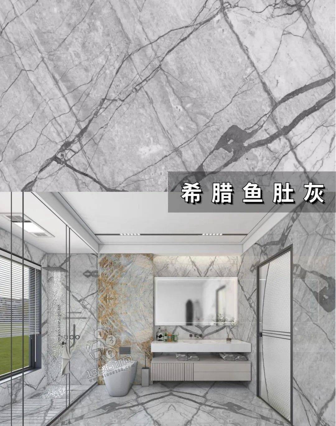 產自中國的魚肚灰,紋理和希臘魚肚灰接近紋理粗礦且自然,底色細膩灰度純正在魚肚灰系列中屬于中低檔次選手。