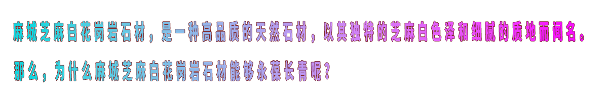 麻城芝麻白花崗巖石材,是一種高品質的天然石材,以其獨特的芝麻白色澤和細膩的質地而聞名。那么,為什么麻城芝麻白花崗巖石材能夠永葆長青呢?
